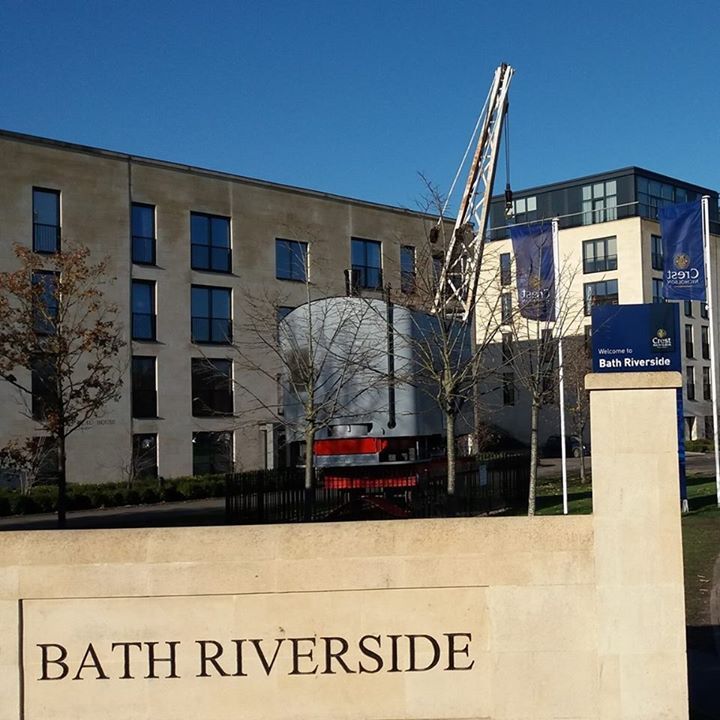 Main entrance to Riverside with original Stothert & Pitt's recently refurbished crane