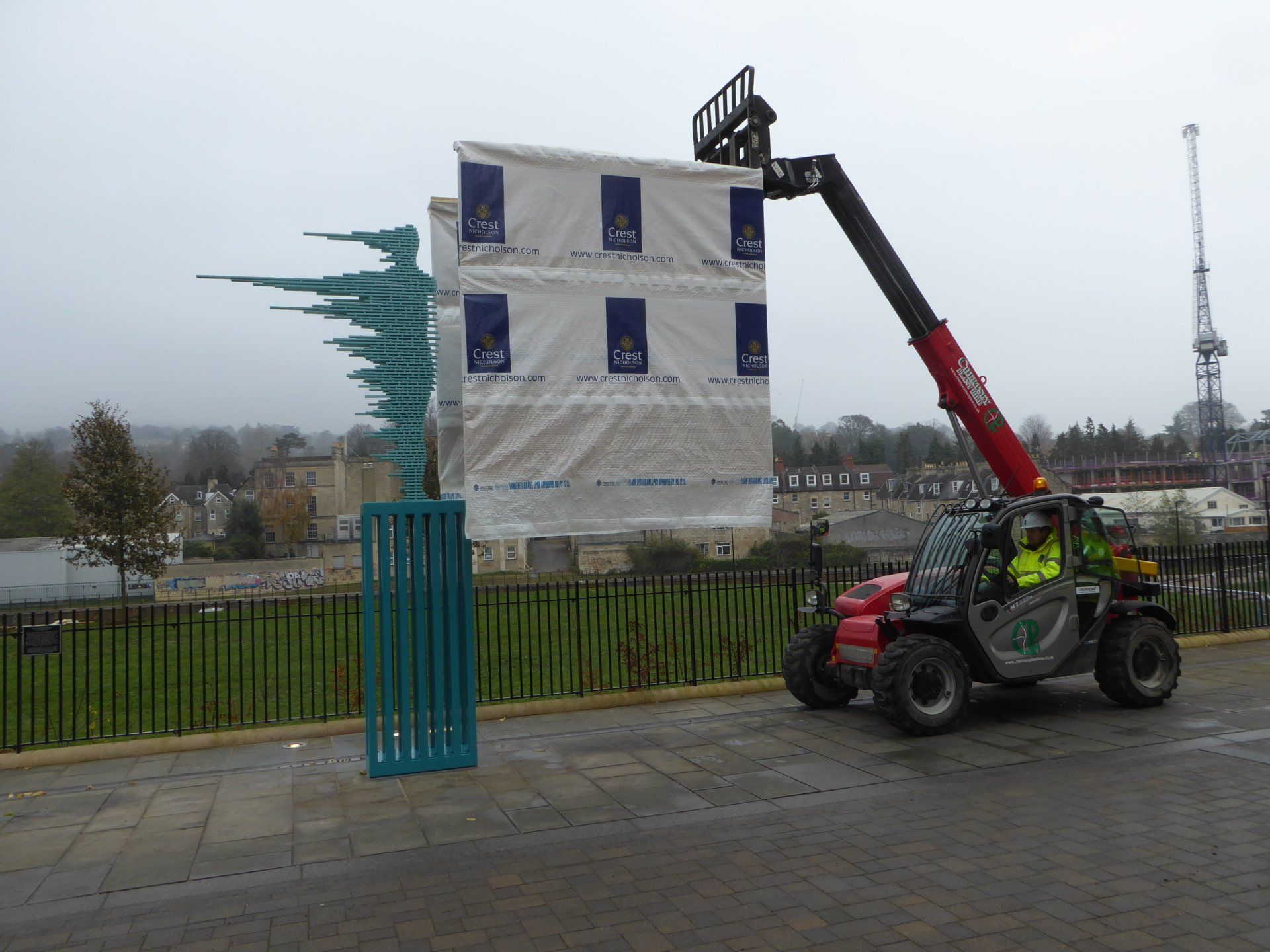 Riverside’s new and very welcome visitor is the creation of local artist Anna Gillespie, with Bath engineers Buro Happold advising on structural detail and the finished work being fabricated by IronArt of Bath. The metal for the installation comes from strips that were left over following the refurbishment of Victoria Bridge, hence the work’s title. 2500 bolts were used to bolt the creation together.